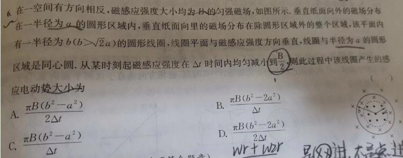 湖南,3月15日,物理,高中物理小题狂做选修第二册,41页第6题 为什么是b方减a方?