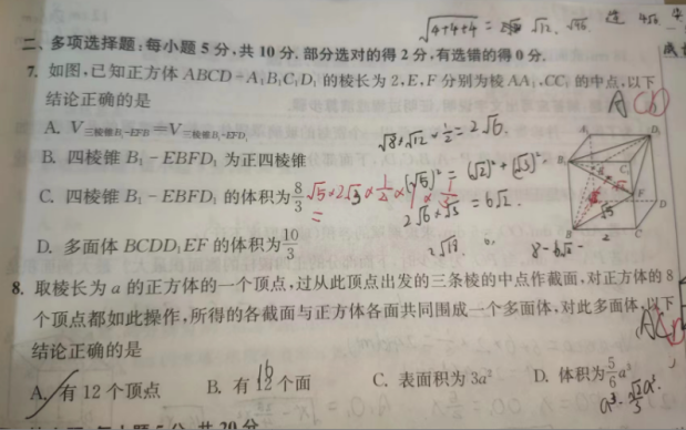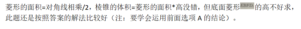安徽,4月5日,数学,《高中数学 小题狂做 必修第二册RA》:P55,题7。疑惑是四棱锥体积用菱形对角线相乘算底面积再乘以高为什么不对?