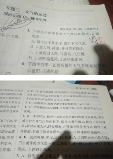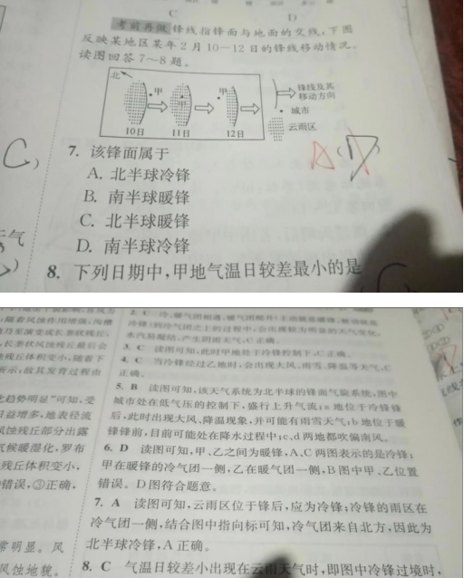 2.地理小题狂做选择性必修一,29页第七题。为什么他的冷气团来自于北方,就是北半球的冷风?