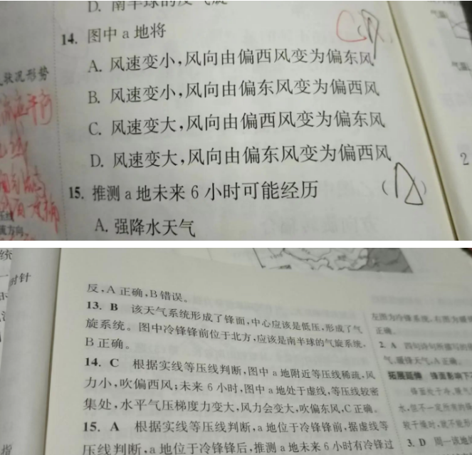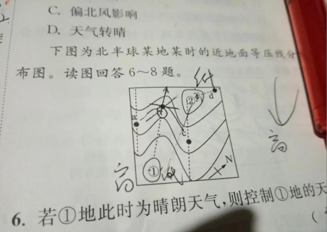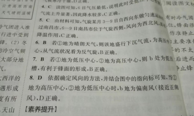 1.高中地理小题狂做选择性必修一,32页 第七题 是怎么判断出b是低压槽?