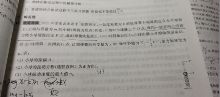 江西,11月20日,数学,《高中物理小题狂做选择性必修第一册RJ》:p45,题12。疑惑是: t为0是不应该在原点吗?位移不应为0吗?